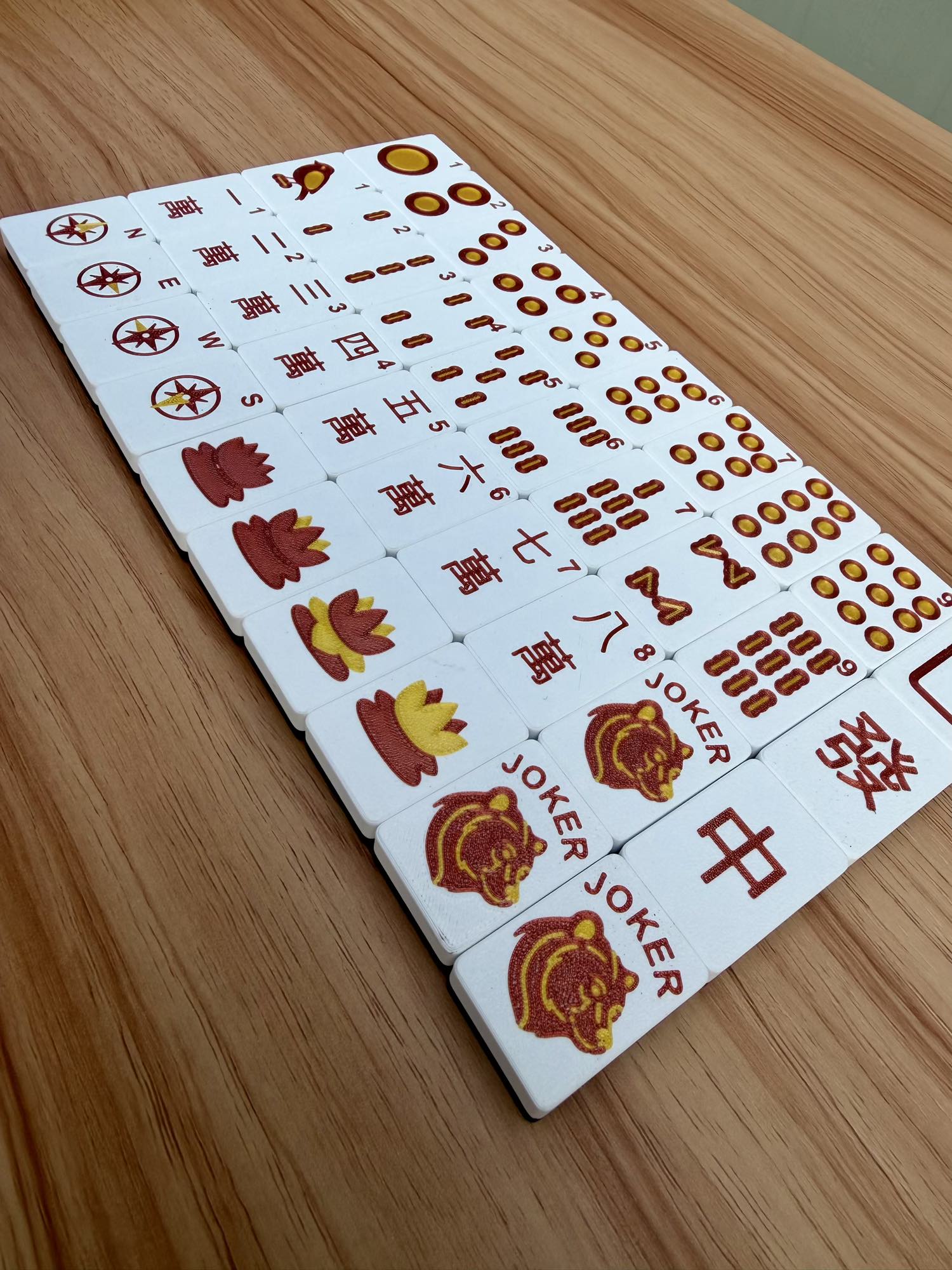 Every Mahjong Set includes 160 American Made Tiles (144 base tiles, 10 jokers, and 6 blanks)